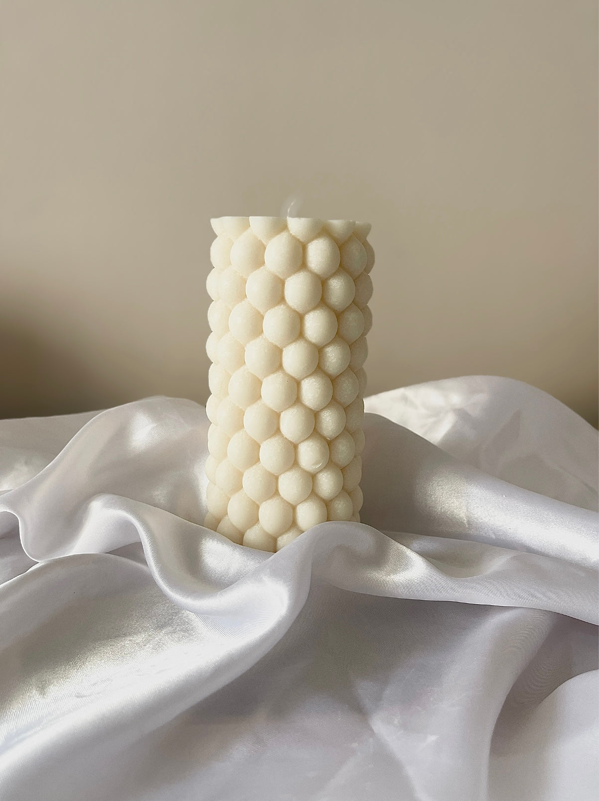Notre bougie Bubble XL est disponible en blanc, elle apportera de l'élégance à votre intérieur grâce à ces détails fabriqué avec soin et délicatesse.