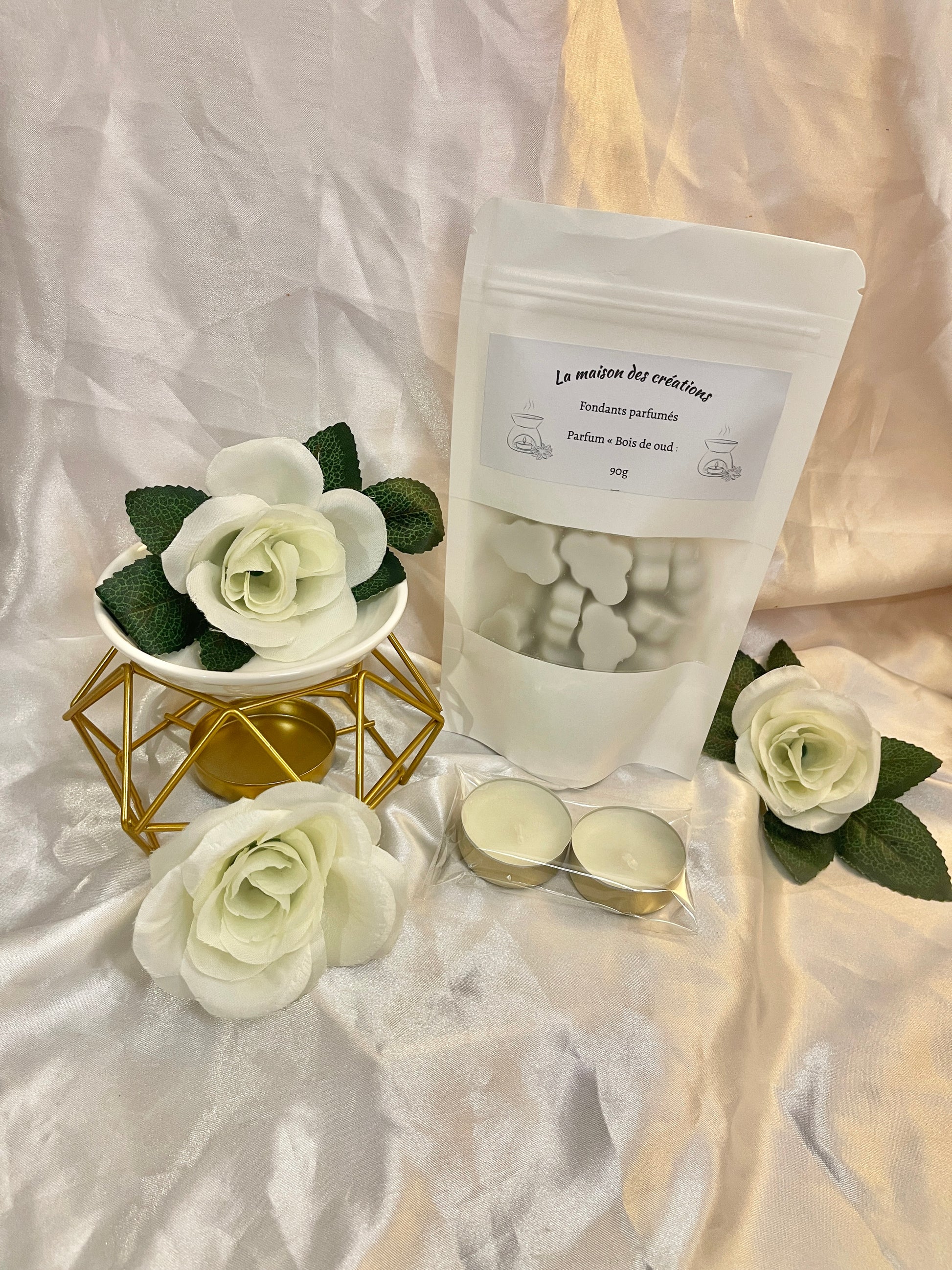 🦋 Dans ce coffret, vous retrouverez : 1 brûleur Athéna, 1 sachet de fondants parfumés de 90g « Bois de oud » et 2 chauffes-plats.