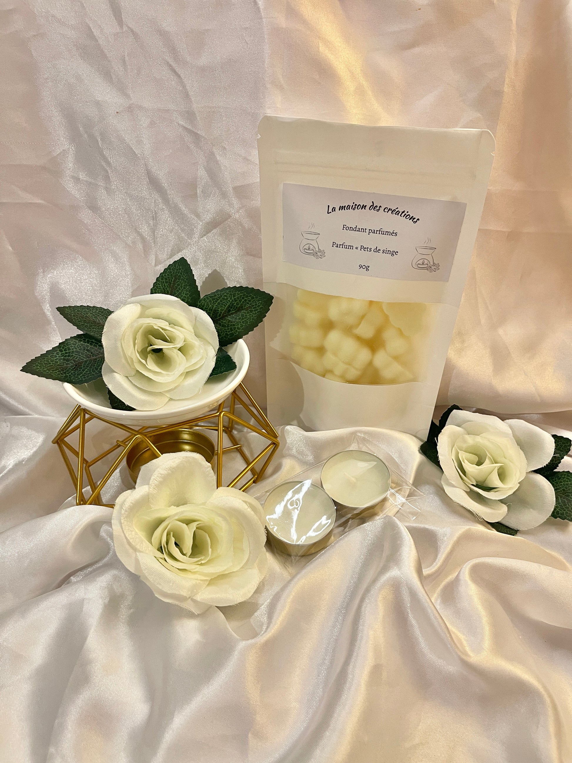 🦋 Dans ce coffret, vous retrouverez : 1 brûleur Athéna, 1 sachet de fondants parfumés de 90g « Pets de singe » et 2 chauffes-plats.