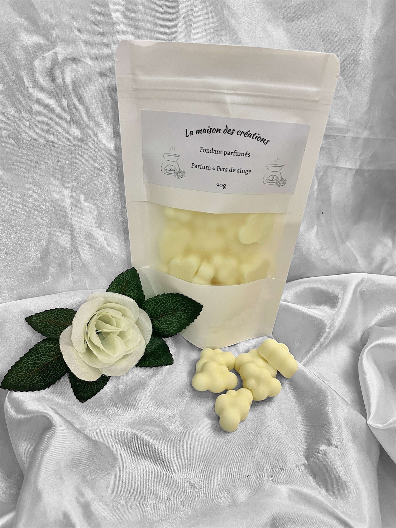 Découvrez nos sachets de 90g senteur Pets de singe. Il vous rappellera ce doux parfum de fruits exotiques, et transformera votre maison en un espace de souvenir, apaisant et relaxant.