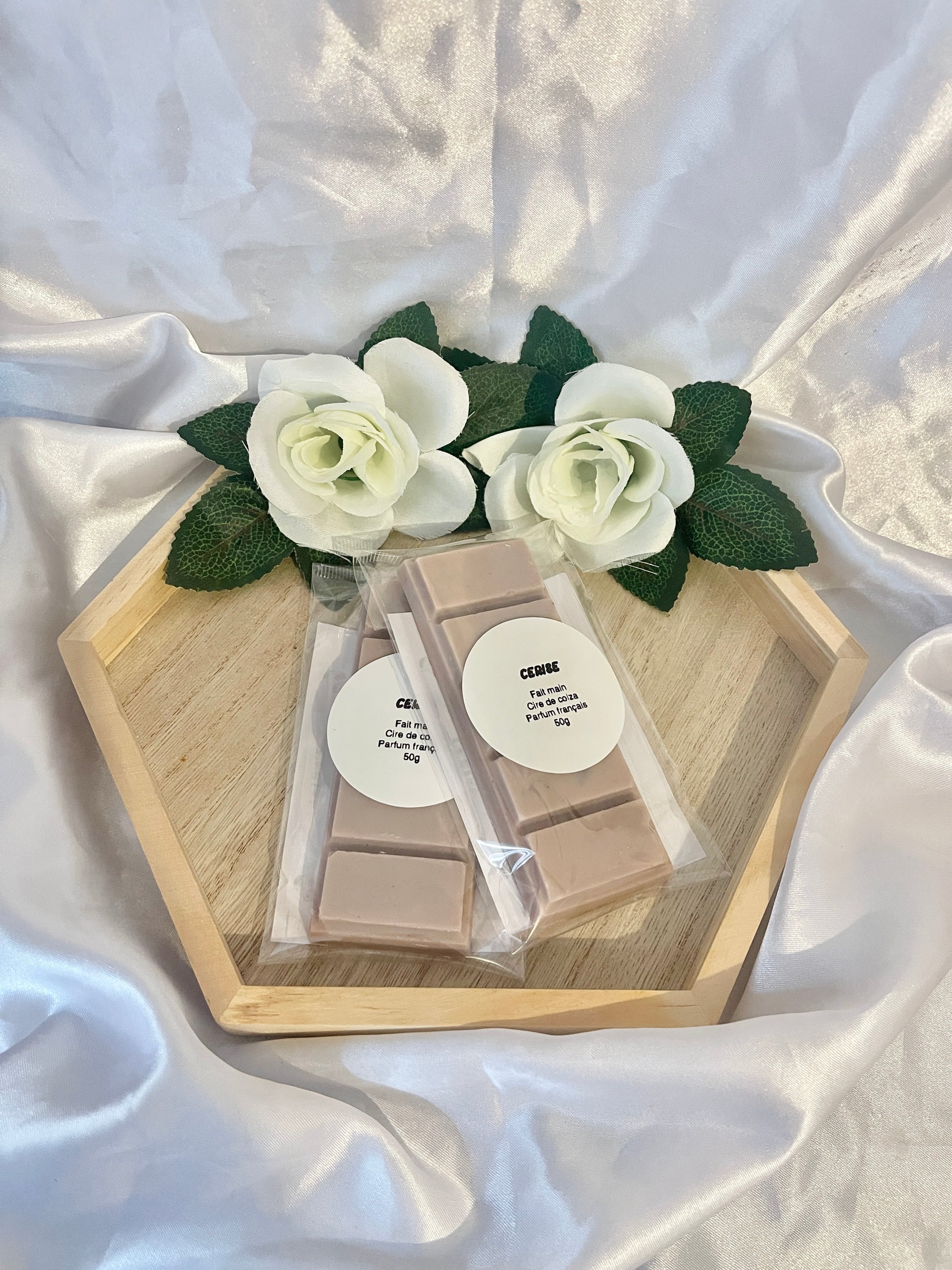 Nos fondants sont fabriquées à la main en utilisant de la cire de colza ou de soja et des huiles parfumées d'origines française de Grasse.