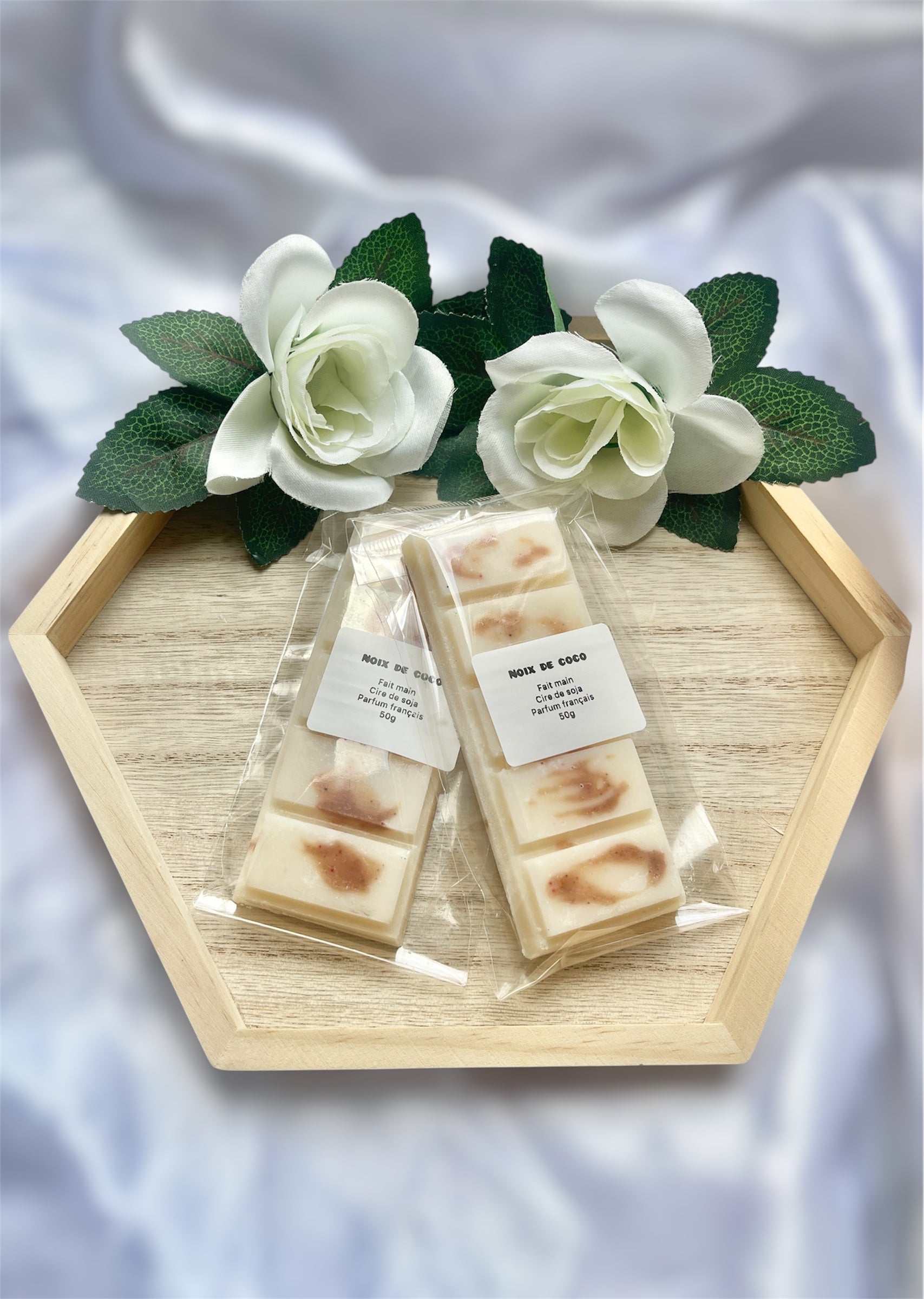 Découvrez nos fondants parfumés senteur Noix de coco. Il vous rappellera ce doux parfum des îles, et transformera votre maison en un espace de souvenir, apaisant et relaxant.