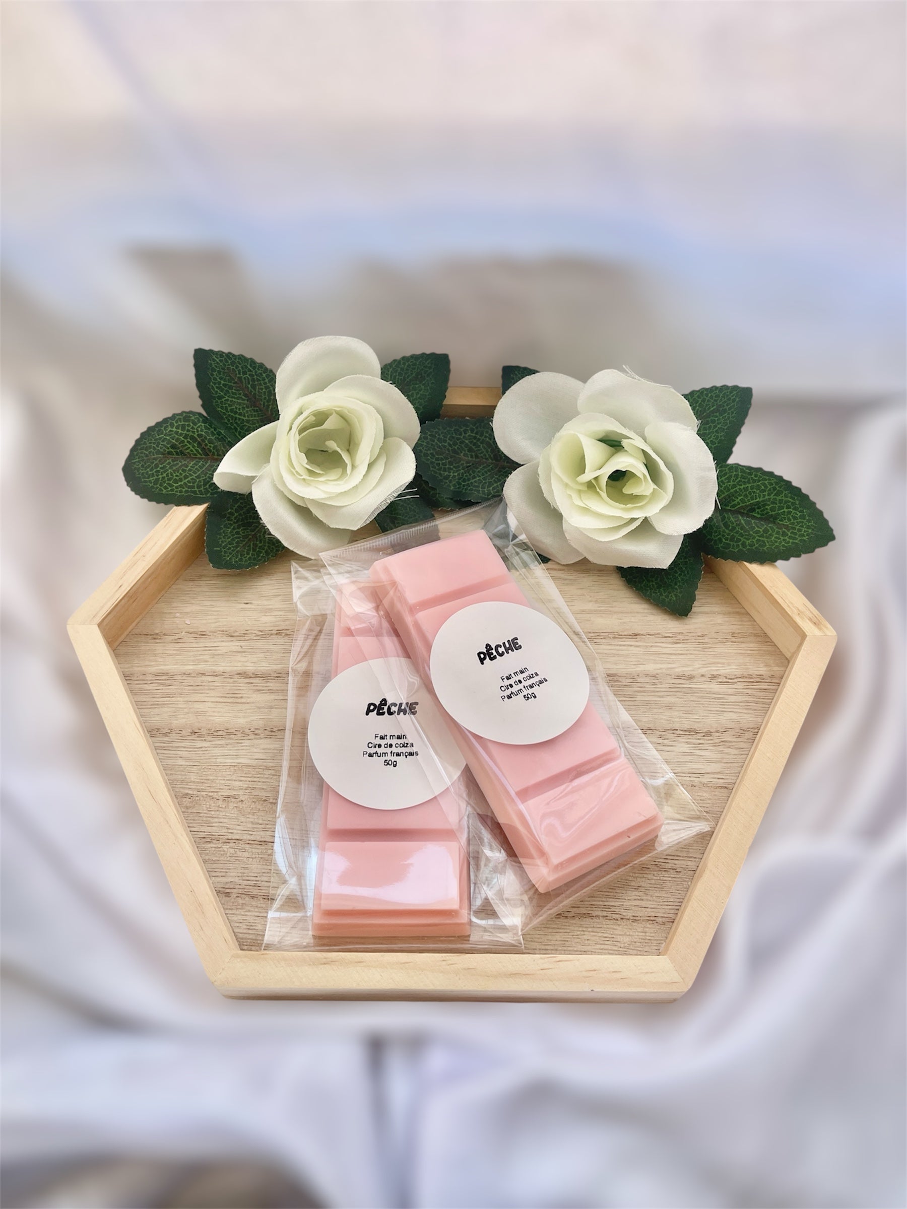 Découvrez nos fondants parfumés senteur Pêche. Il vous rappellera ce doux parfum d’été, et transformera votre maison en un espace de souvenir, apaisant et relaxant.