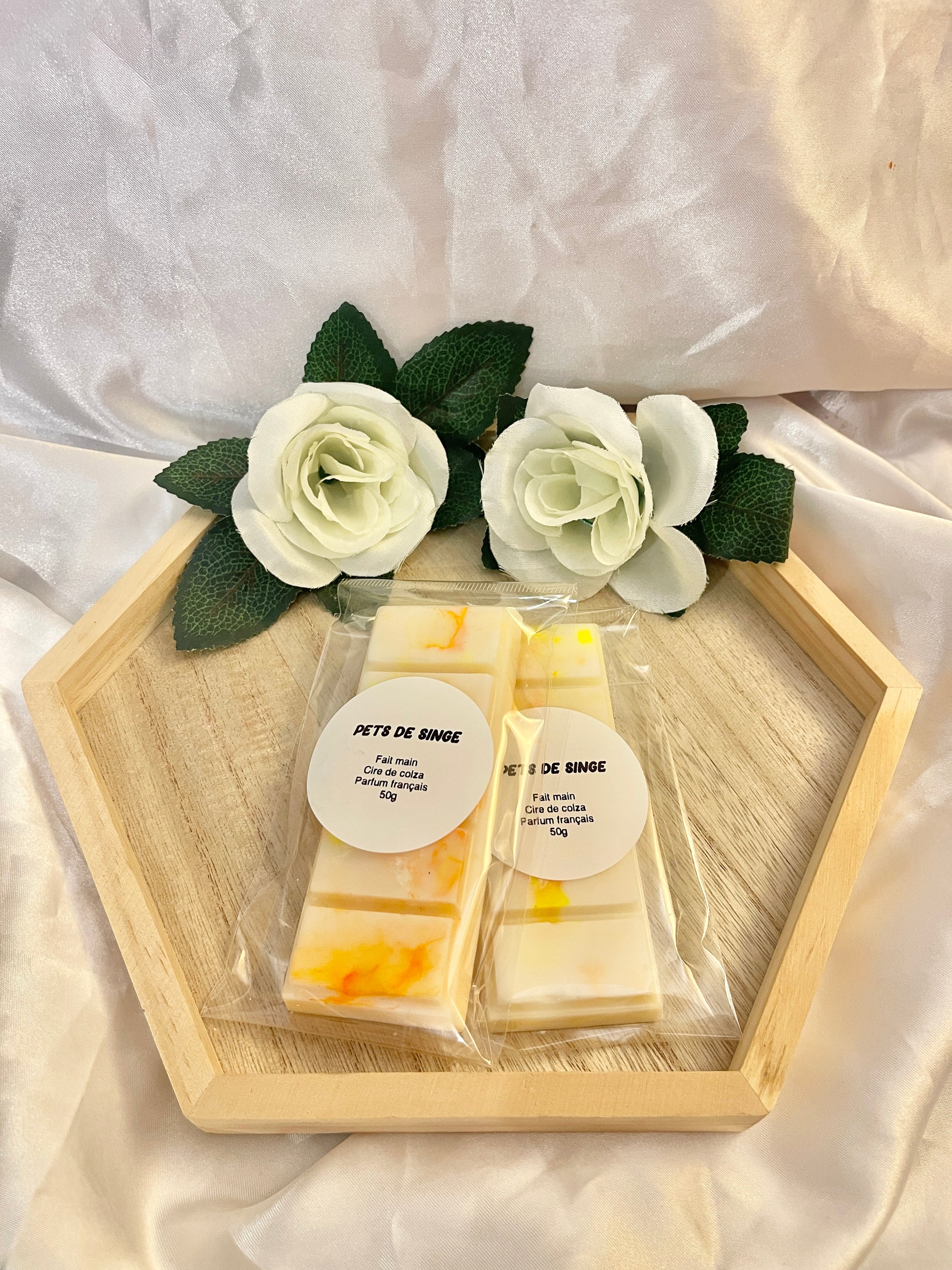 Découvrez nos fondants parfumés senteur Pets de singe. Il vous rappellera ce doux parfum exotique, et transformera votre maison en un espace de souvenir, apaisant et relaxant.